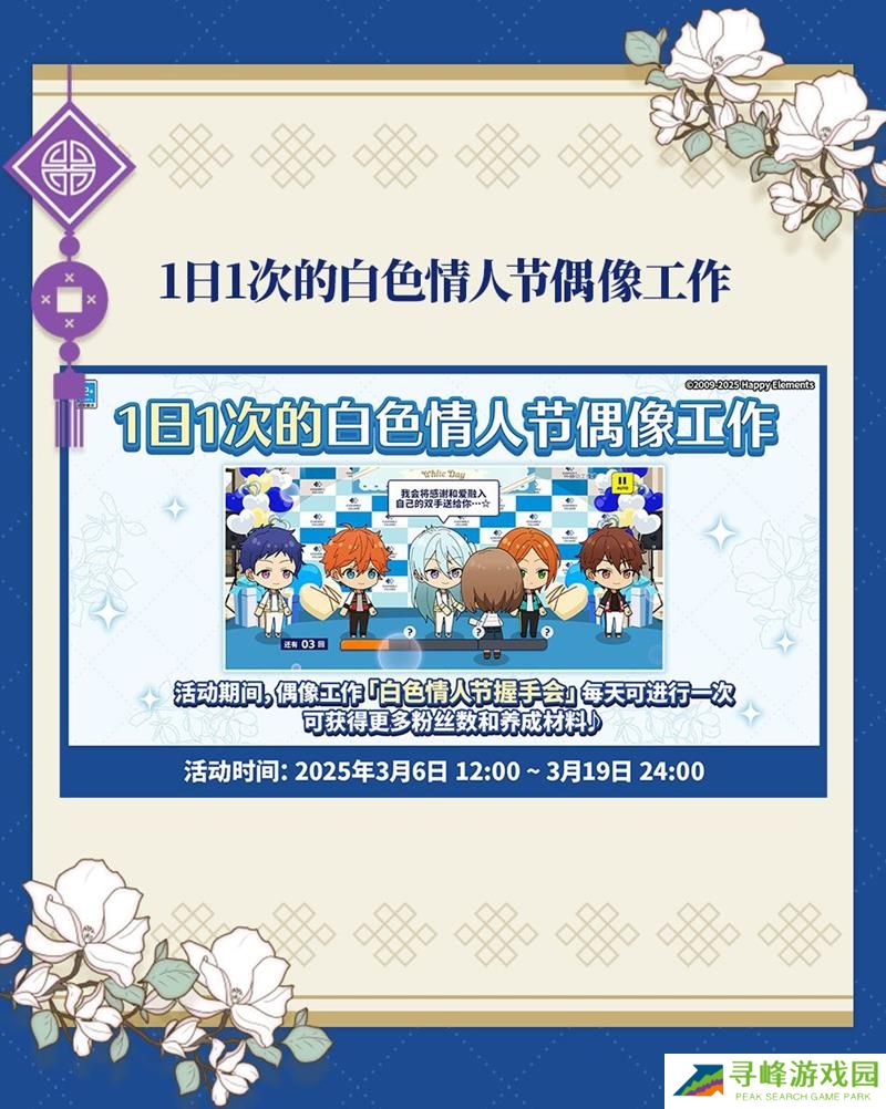 偶像梦幻祭2官方公布了白**人节期间将会举行的各种活动,下面是切游小编整理的偶像梦幻祭2白**人节期间的活动内容一览,下面是活动的详细情报,我们一起来看一看。