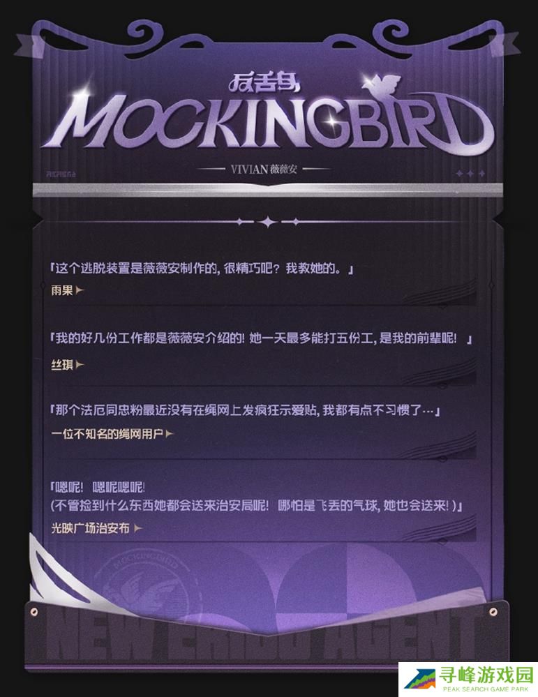 绝区零今日正式公布了新S级代理人薇薇安的档案信息,这是一位来自属反舌鸟新阵营的代理人,我们来一起看看吧。