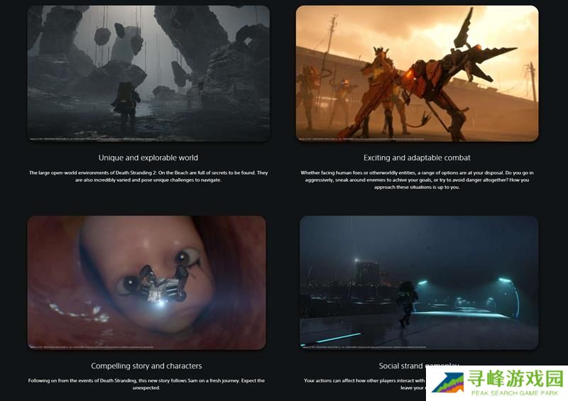 《死亡搁浅2》将延续前作的反应性世界和开放式遭遇战设计,玩家将在一个充满超自然敌人、障碍以及深刻哲学问题的世界中展开冒险。游戏的简介中提到,山姆和同伴们将踏上拯救人类免于灭绝的新旅程,而小岛秀夫这位传奇游戏创造者也将再次改变玩家对游戏世界的认知。从已公布的宣传材料来看,《死亡搁浅2》将包含沙漠、山地、水生环境以及城市景观等多种生物群系,每种环境都将带来独特的穿越挑战,如岩石滑坡和洪水等动态环境影响,进一步增强了游戏的沉浸感和可玩性。