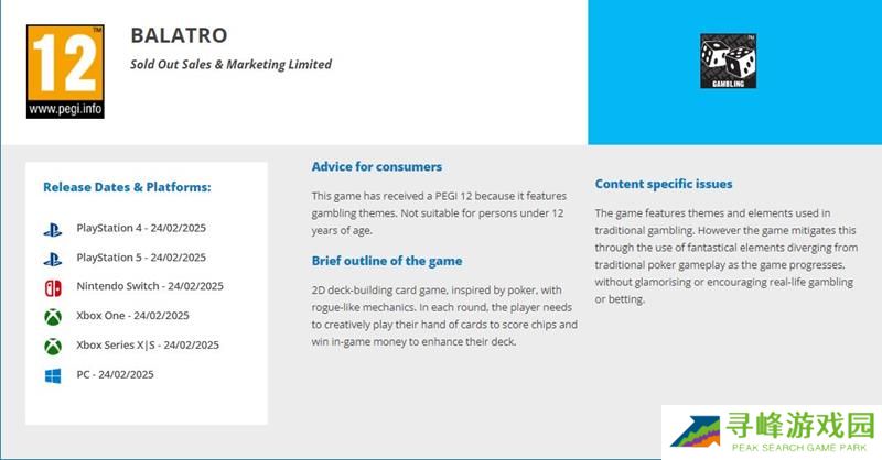“投诉委员会认为,尽管该游戏解释了扑克的各种牌型,但这款带有奇幻元素的类 Rogue-like 牌组构建游戏应被定为 PEGI 12 分级。”