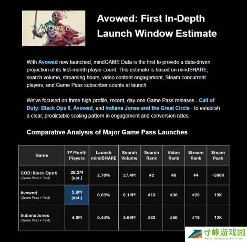 值得一提的是,概预测是根据Xbox Game Pass,Steam活跃玩家,游戏的搜索量,视频内容参与度等来源数据从而形成的预测。