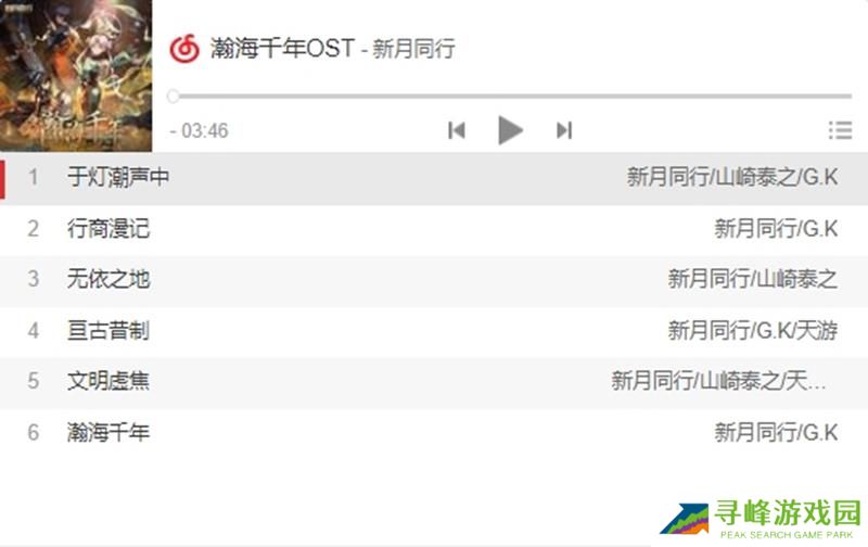 新月同行的《瀚海千年OST》正式上架了网易云音乐平台。本专辑包含6首曲目,均为新月同行瀚海千年版本的游戏曲目。下面是详细的情报。