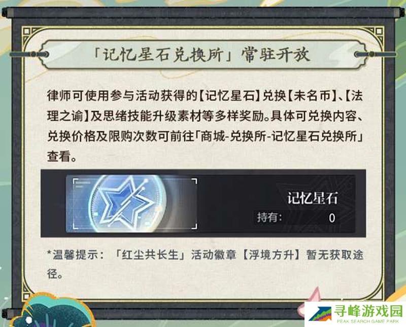 律师可使用参与活动获得的【记忆星石】兑换【未名币】、【法理之谕】及思绪技能升级素材等多样奖励。具体可兑换内容、兑换价格及限购次数可前往「商城-兑换所-记忆星石兑换所」查看。