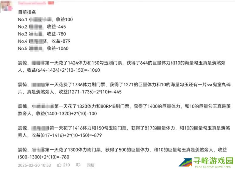 据部分攻略博主爆料,玩家们经过一整天的艰苦“肝”后,开箱获得的收益严重入不敷出:有位博主花费了大量体力和上百勾玉,结果仅获得几百体力和仅10勾玉奖励,几乎出现了资源倒扣的状况。