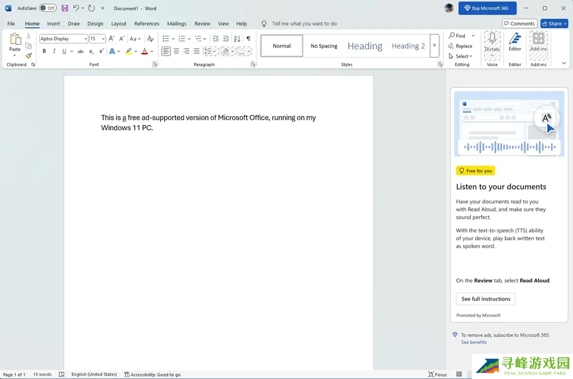 作为代价,微软在其中内置了部分广告资源,且用户无法通过简单的设置关闭(购买高级订阅即可去掉广告并解锁全部功能)。此外,每隔几个小时,Office 就会自动静音播放 15 秒的视频广告。