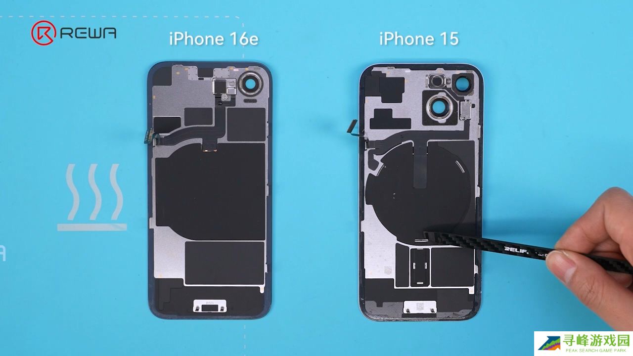 最后,视频还显示 iPhone 16e 缺少用于无线充电的 MagSafe 磁铁。