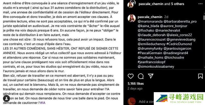 面对这一不合理的要求,Pascale Chemin 和其他 31 名配音演员选择了团结一致,共同抵制。他们写了一封集体拒绝信,发给了发行商 EA,目前正在等待对方的回复。Chemins 在社交媒体上补充道,电子游戏发行商试图强行突破配音演员对 AI 的反对,但配音演员们坚决不会接受这种损害自身权益的行为。她呼吁整个行业都应该关注这一问题,只有将保护配音演员声音权益的条款正式添加到合同中,才能避免未来的灾难。
