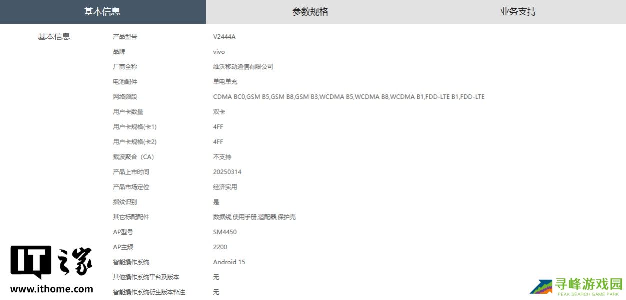 vivo Y300i 手机产品型号为 V2444A,市场定位“经济实用”,预装 Android 15 系统。新机尺寸为 165.70×76.30×8.09mm、重约 205g,分辨率 1608*720,内置 6500mAh 电池。