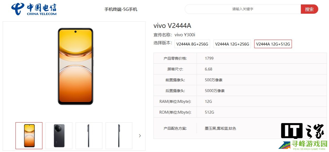 本站注意到,Y300i 手机已现身中国电信终端产品库,共 3 种规格版本,产品零售价 1499 元起。