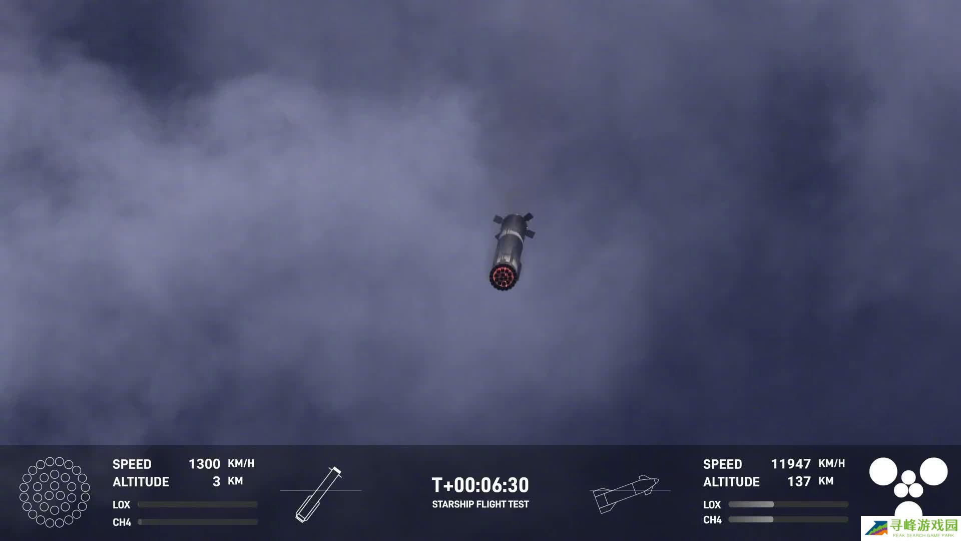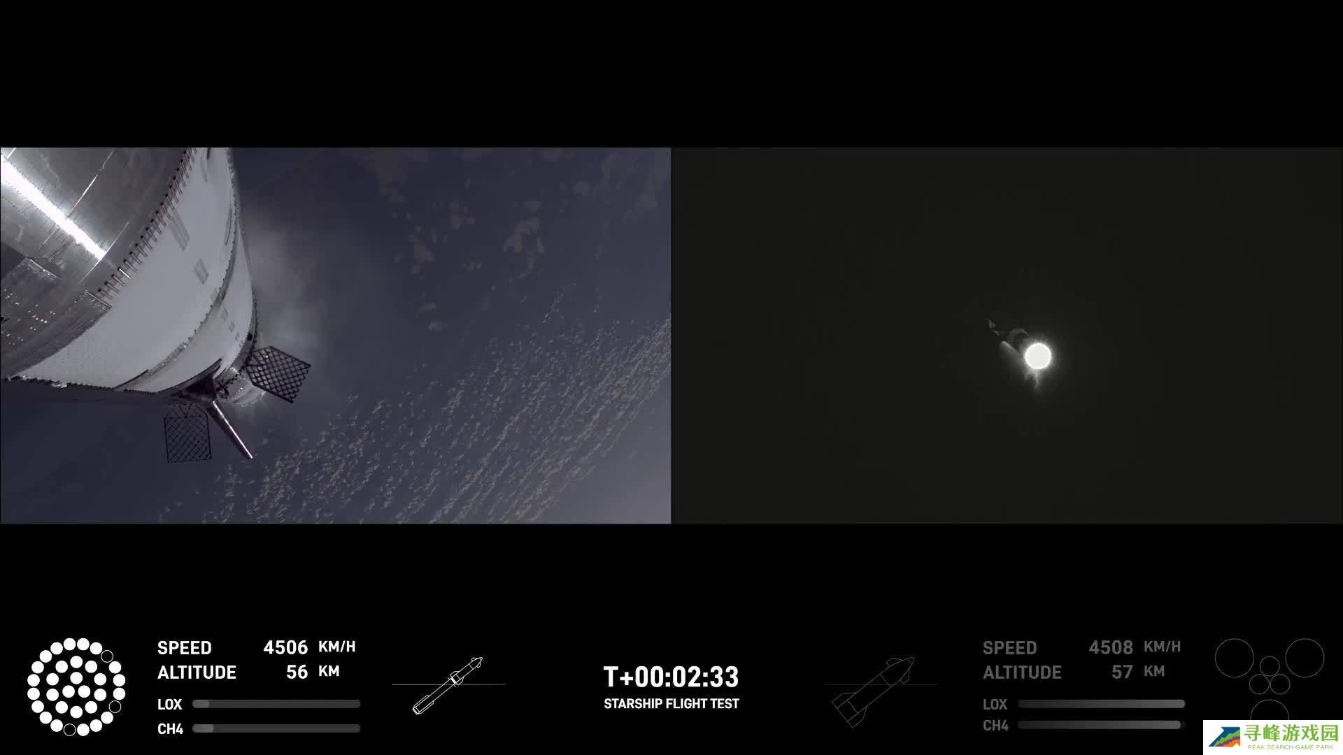 发射约两分半钟之后,星舰级间热分离。在热分级分离阶段,星舰二级 S34 点燃其猛禽发动机,同时超重型助推器 B15 已启动推进系统,向发射场方向返航。
