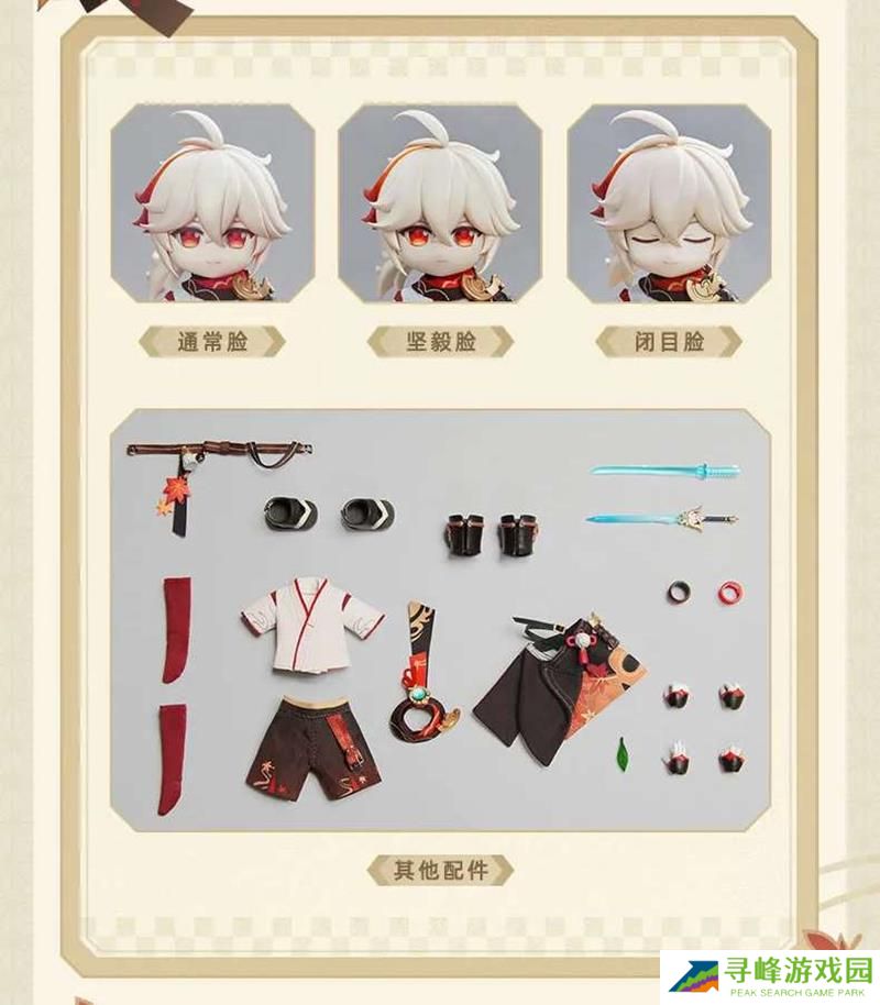此次推出的换装可动人偶,以1:12的比例制作,完美还原了角色的细节与魅力。人偶不仅配备了“苍古自由之誓”、“叶子”、“神之眼”等丰富的装饰配件,还包含了多款替换手型和替换表情配件,让玩家们可以尽情为枫原万叶设计出各种独特的造型,展现其不同的风采。