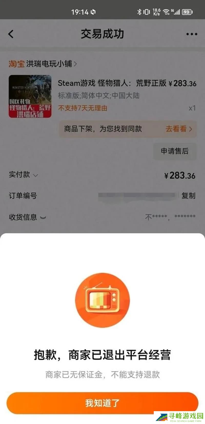 然而,这些玩家在购买后却遭遇了尴尬的局面,他们收到的礼物被收回,导致无法正常游玩游戏。在联系商家寻求解决方案时,却发现自己无法再联系到对方,商家已经跑路,目前在淘宝上已经无法搜到该商家的任何信息。