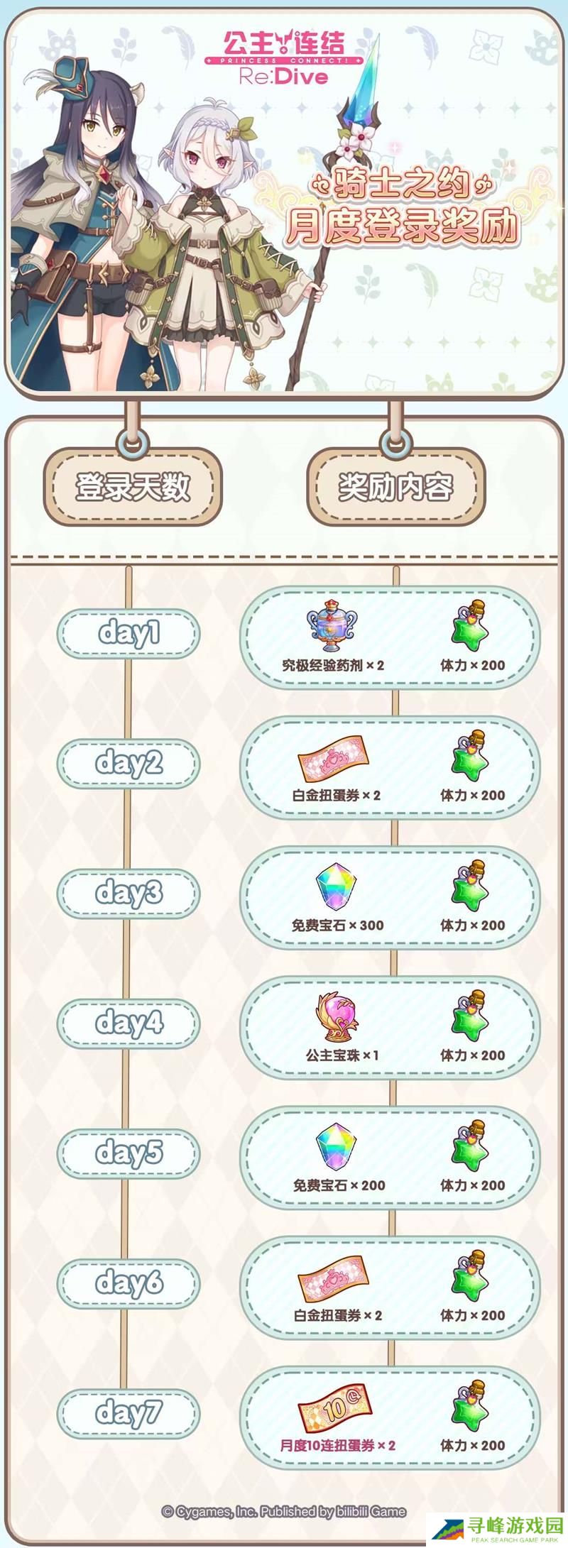 为助力骑士君们能体验到更丰富的游戏内容,活动排期调整期间游戏内将开展「骑士之约」月度登录活动。每月登录7天即可获得包含十连扭蛋券在内的丰富奖励!