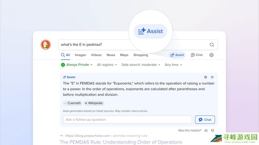 DuckDuckGo 搜索引擎的 AI 功能名为“Assist”,于 2023 年首次推出,经过近 2 年的测试后现已告别 Beta 测试。与 Google 的 AI Overview 类似,Assist 在搜索结果上方提供 AI 生成的摘要。