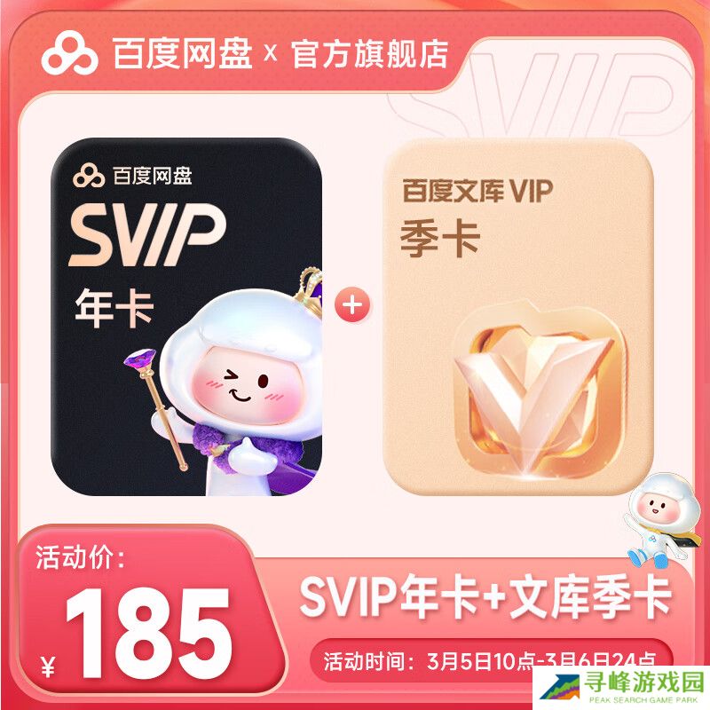 京东百度网盘年卡 + 文库季卡 SVIP 年卡 + 文库季卡 185 元直达链接