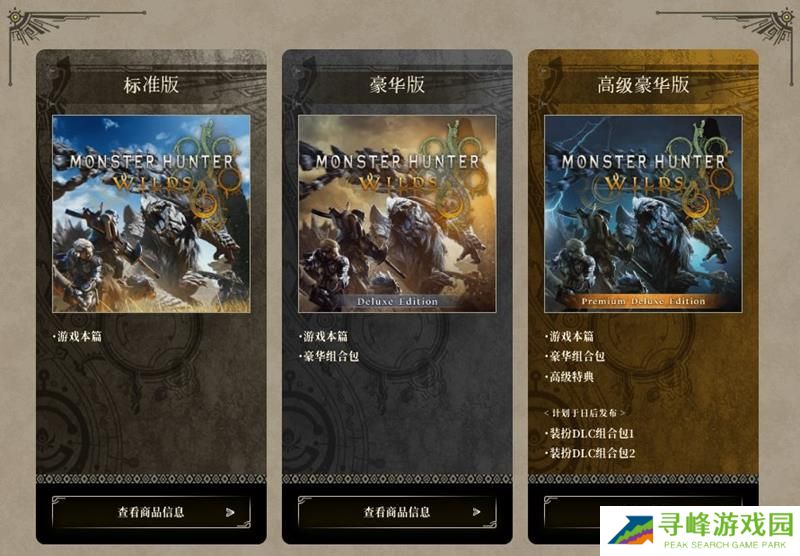 《怪物猎人荒野》目前有三种版本供玩家选择,分别是标准版、豪华版和高级豪华版。标准版包含游戏本篇,而豪华版则在此基础上增加了豪华组合包。高级豪华版则更为丰富,除了游戏本篇和豪华组合包外,还包含了高级特典以及计划日后发布的装扮DLC组合包。