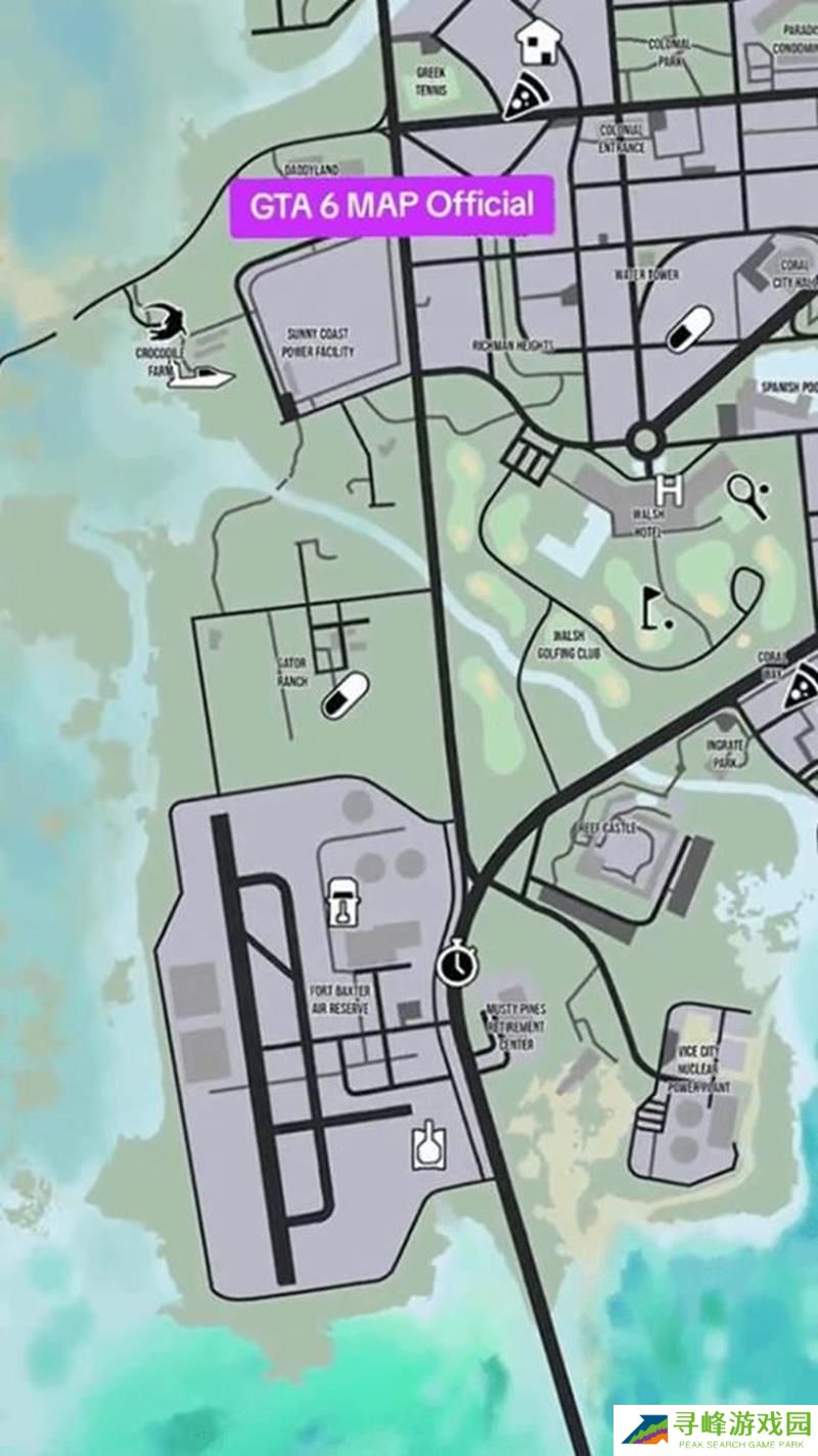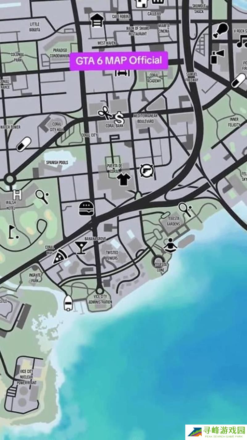 据外媒报道,网络上日前流传着一张疑似《GTA6》的世界地图,其中标注了各种兴趣点,包括药店、商店、船只停靠点以及其他重要地点。