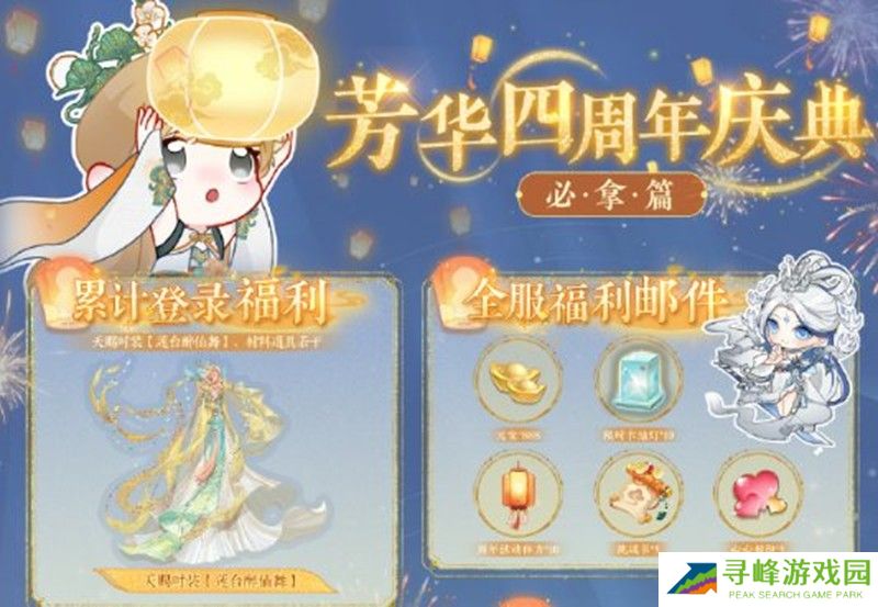 参与四周年「芳岁华灯」系列活动,兑换精美天赐时装、妆容、背景、聊天外观等新品!