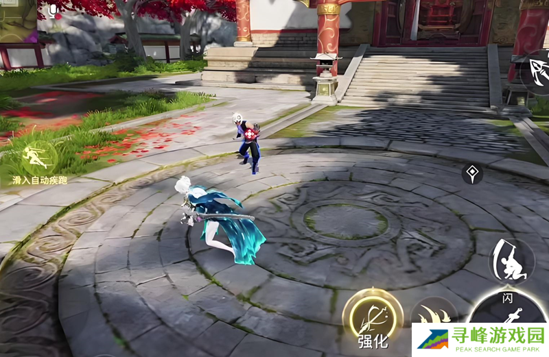 3、九天真王阁前及四灵台处新增秋千机关,玩家靠近秋千时可进行交互。当秋千特效亮起,秋千向前摆动时,点击或长按按钮即可加速,操作得当还能实现360度大回旋!快来挑战成为秋千达人吧!