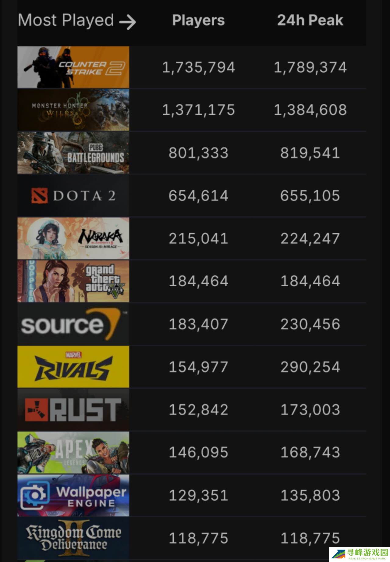 其中,在 2 月 28 日上线《怪物猎人:荒野》游戏功不可没,过去 24 小时 Steam 平台同时在线玩家数峰值达到 1384608 人,仅次于《CS2》。在 Steam 全球畅销榜上,该游戏已经连续数周占据榜首位置。