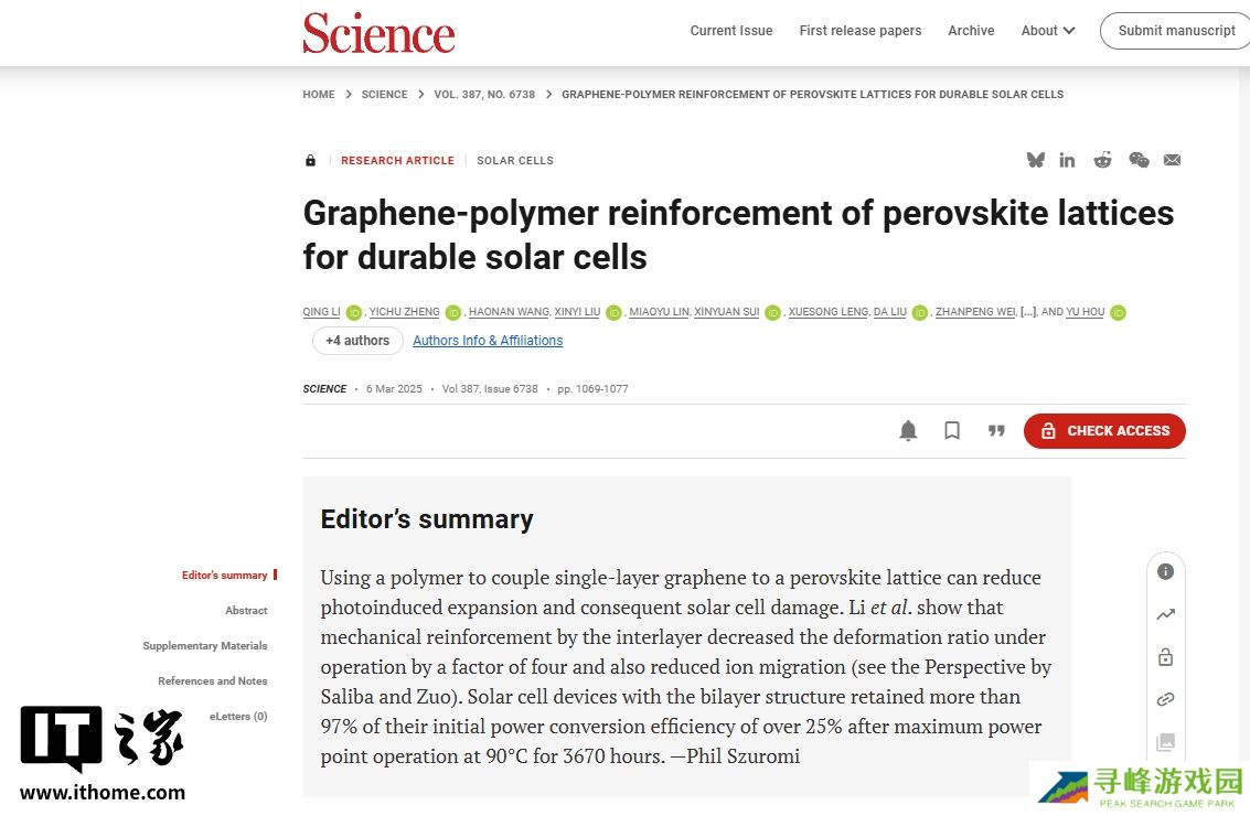 本站 3 月 7 日消息,钙钛矿太阳能电池因其高效、低成本、轻量化等特点,被视为未来光伏技术的重要方向。然而,这类电池存在一个关键问题 —— 稳定性较差,难以长期使用。华东理工大学科研团队成功找到延长