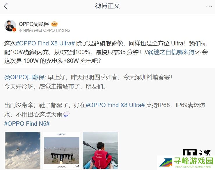 本站 3 月 6 日消息,周意保今日发文公布了 Find X8 Ultra 部分信息:新机除了是超旗舰影像,同时标配 100W 超级闪充,从 0 充至 100% 最快 35 分钟。本站注意到,周意保还