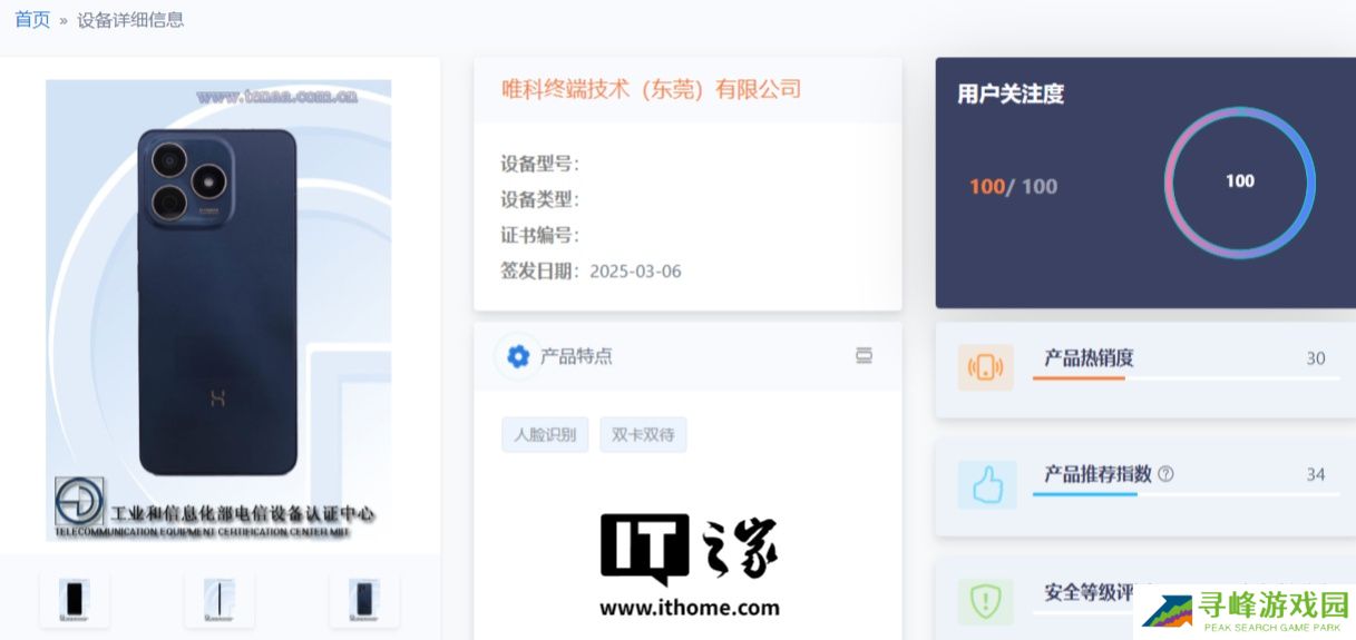 本站 3 月 6 日消息,型号为“JLG-AN00”的唯科 WIKO 手机已现身电信设备终端网,新机证件照已公布,支持 5G 、人脸识别、双卡双待等功能。相关页面显示,唯科 WIKO“JLG-AN00