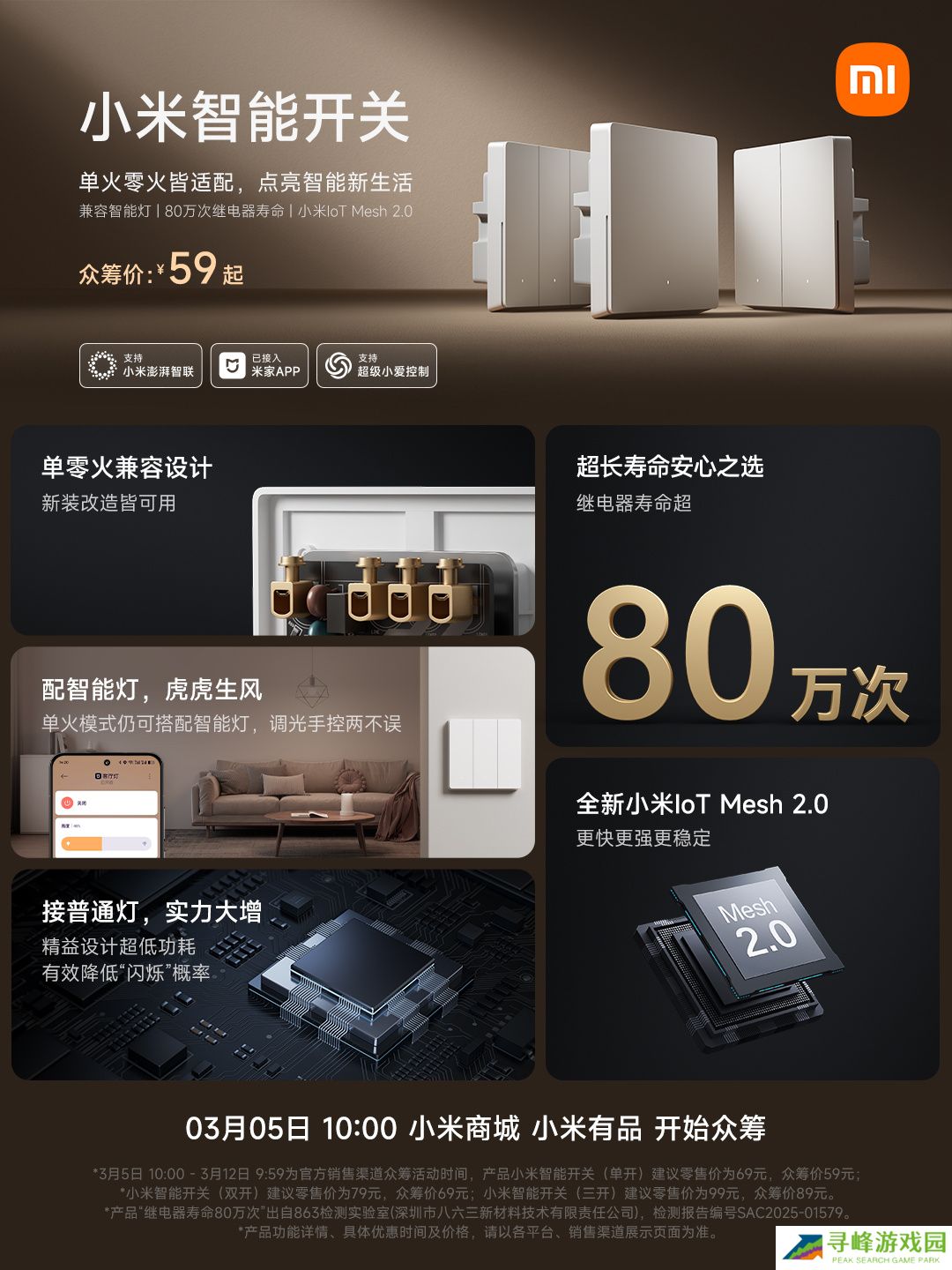 感谢本站网友 Autumn_Dream、風見暉一 的线索投递! 本站 3 月 3 日消息,本站从小米智能生态获悉,小米智能开关新品将于 3 月 5 日开启