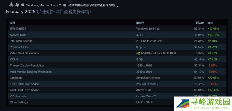 Steam2025年2月硬件使用率调查报告 4060来到榜首