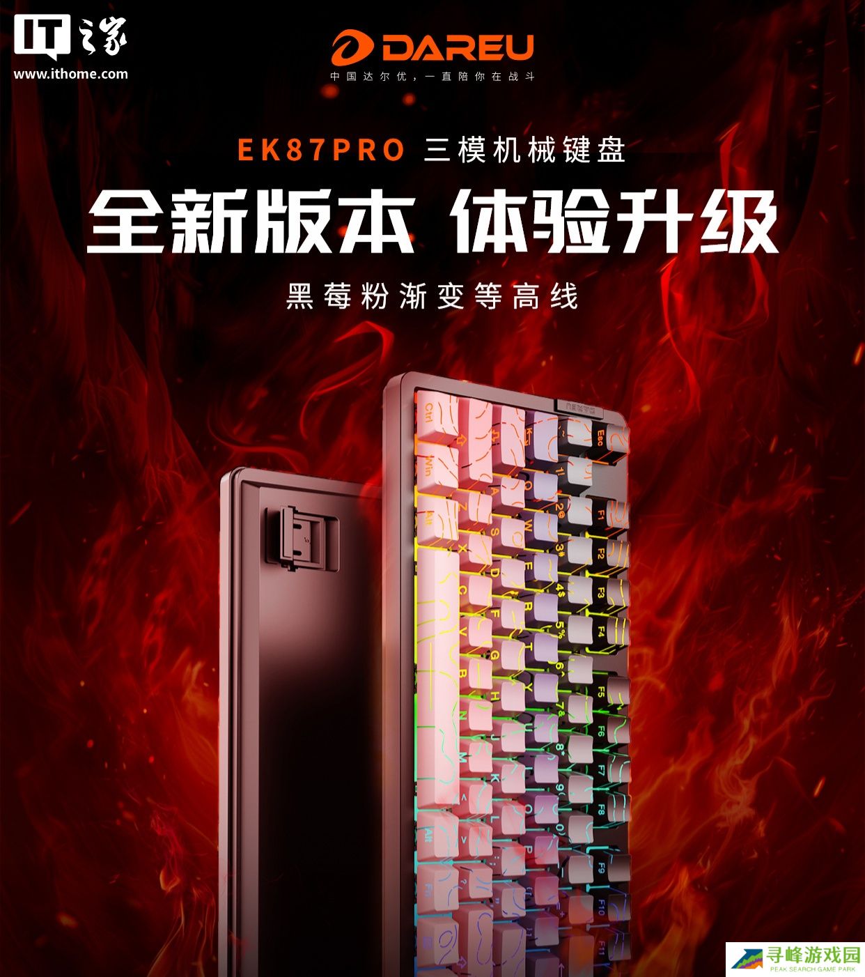 本站 2 月 25 日消息,达尔优 EK87Pro 机械键盘新增“黑莓粉渐变等高线”版本现已开售,搭载“桃 C 拿铁轴”,定价 259元、首发 239 元。京东达尔优 EK87Pro 机械键盘首发 2