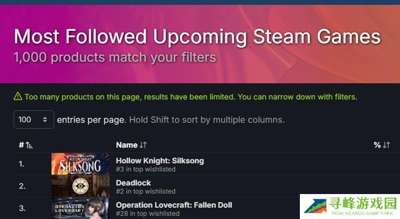 空洞骑士丝之歌重回Steam未发售游戏关注榜第一