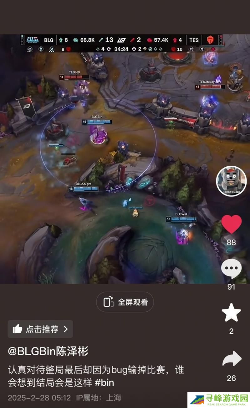 Bin发文称因bug输掉比赛 电竞赛事bug引发的选手争议