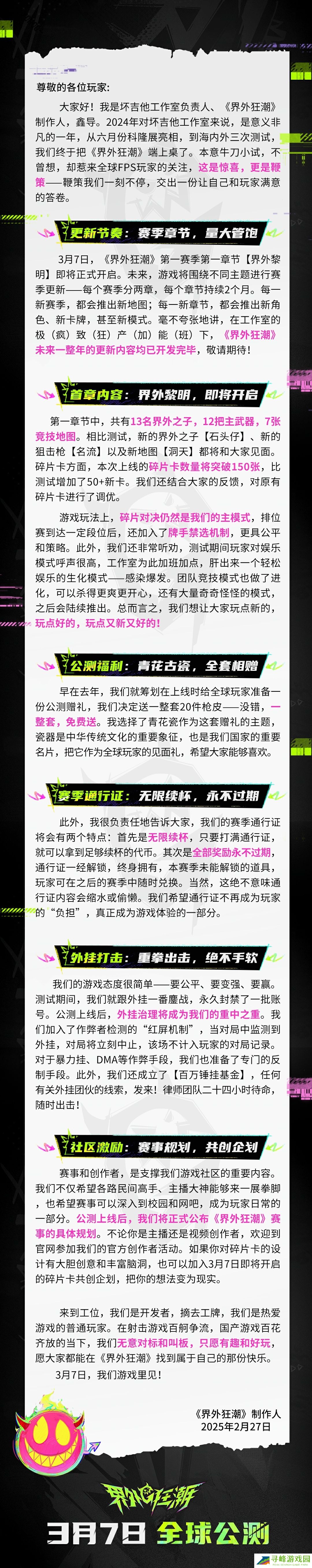 本站 2 月 28 日消息,《界外狂潮(Fragpunk)》是一款网易“坏吉他(Bad Guitar Studio)”工作室推出的快节奏 5v5 战术射击游戏,3 月 7 日全球公测,登陆Xbox、P