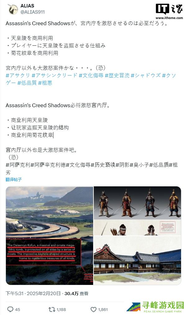 感谢本站网友 Koopa_X 的线索投递! 本站 2 月 24 日消息,玩家 @ALIAS 2 月 20 日在 X 上指出,育碧在《刺客信条:影》中多处设