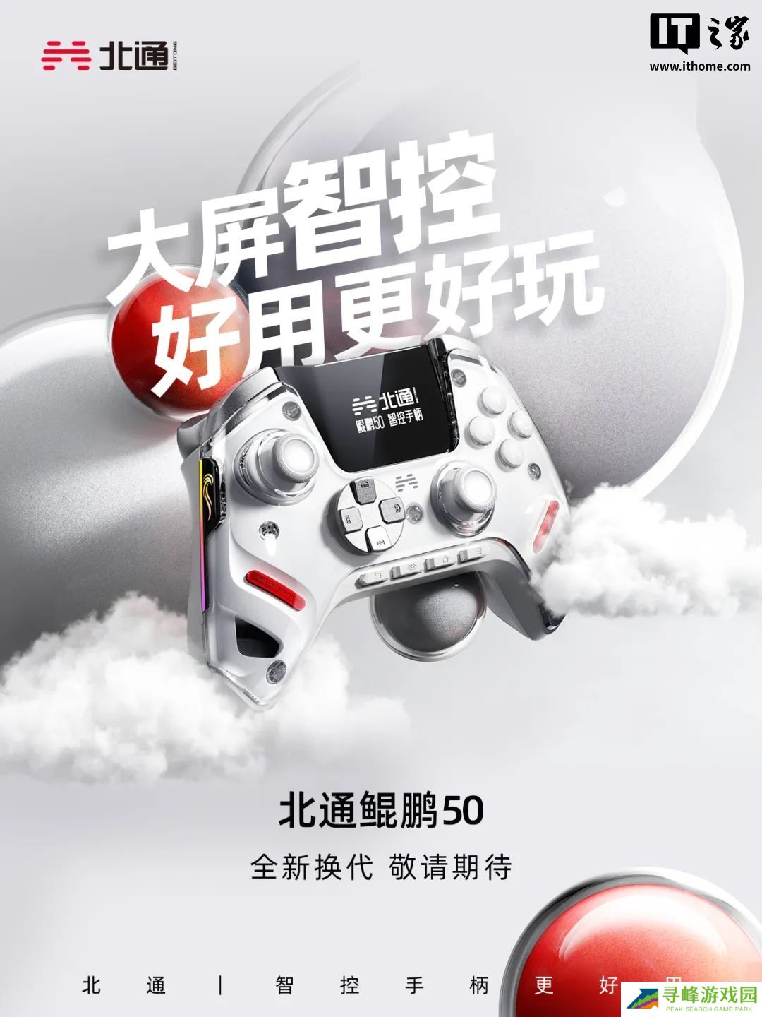 本站 2 月 24 日消息,广州市品众电子科技有限公司今日官宣将推出新款北通鲲鹏 50 游戏手柄,新品宣称“大屏智控,好用更好玩”。本站注意到,新款北通鲲鹏 50 游戏手柄整体延续前代设计风格,将配备
