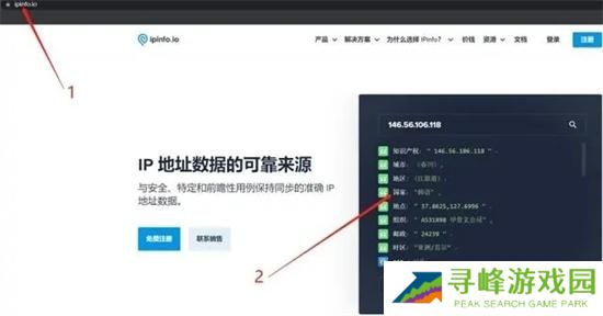 4、使用浏览器打开【ipinfo.io】,查看ip是否为日韩或新加坡。