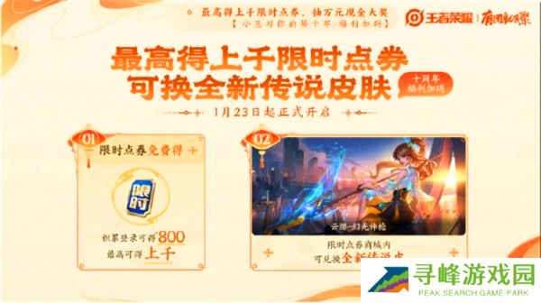 内容:玩家可使用限时点券兑换全新传说皮肤【云缨-幻光神枪】,不要错过!