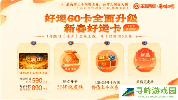 内容:好运60卡将升级为新春好运卡。购买后,蛇年限定传说皮肤首周仅需590点券!