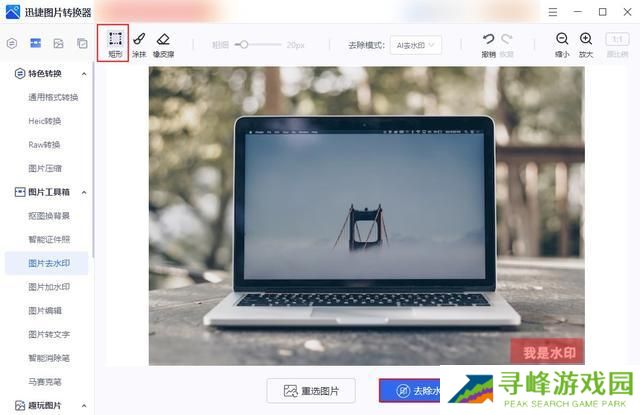 第二步:选择选择左上角的【矩形】,然后框选需要去除水印的区域,接着点击【去除水印】,软件就会自动进行水印去除了。