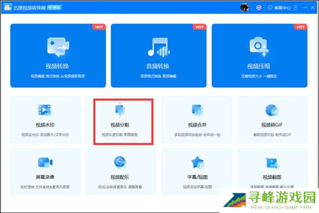 第一步 打开【迅捷视频剪辑软件】,进入首页,看到【视频分割】选项,点击选择。