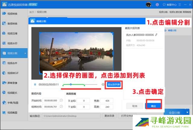 第三步 点击【编辑分割】即可进入到编辑页面,滑动下方的滑动杆到需要剪辑的位置,点击【添加到列表】,并点击【确定】即可返回到上一页面。