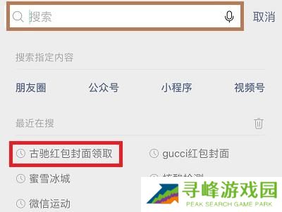 1、大家先进入微信,然后输入红包名,比如“古驰红包封面领取”。