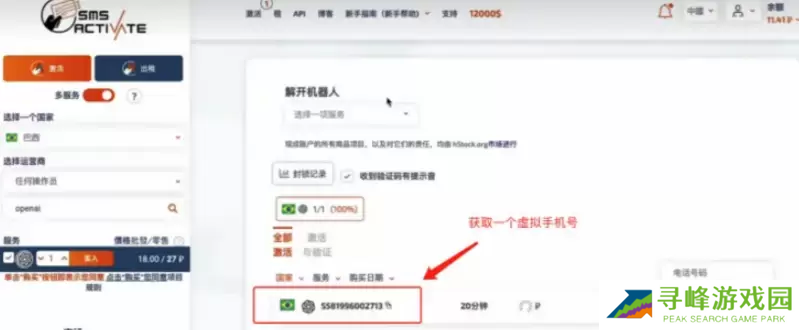 9、可以去租借虚拟号码,选择巴西,服务名选择[openai]。