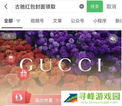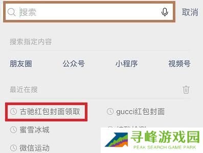 1、首先进入微信,再输入红包名,比如“古驰红包封面领取”。