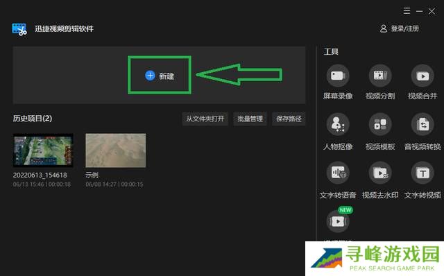举例迅捷视频剪辑软件,我们打开之后,点击左上角【新建】然后导入需要裁剪的视频。