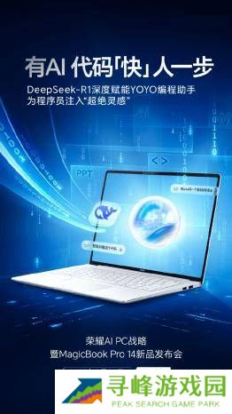 MagicBook Pro 14还是Windows PC中首款实现离电插电同性能的产品,这一突破性的表现使其被誉为笔电调校之王。在AI应用方面,DeepSeek技术深度赋能YOYO助手,不仅支持一键生成PPT,还能快速编程写代码,为用户带来更加便捷、高效的荣耀AI PC应用体验。