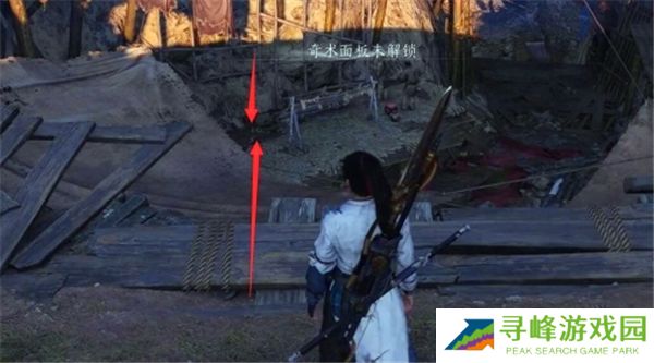 在与小孩对话后,任务提示会引导你到灰坑的台阶。沿着提示的方向前进,你将在台阶处找到遗失的钱袋。