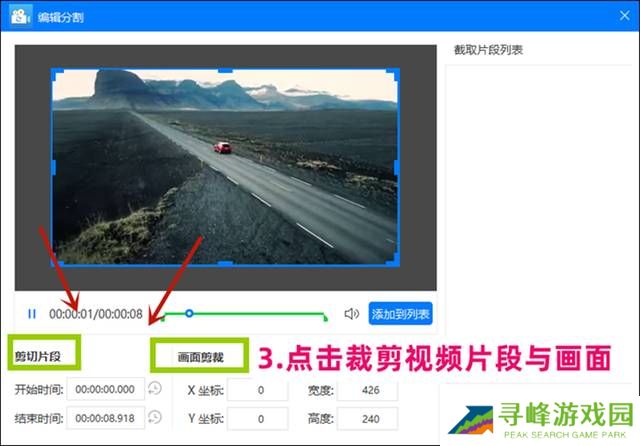 步骤三 上传好视频文件之后,接下来点击【编辑分割】,进入到片段剪切页面。我们可以对视频的长度进行剪切,也可以对视频的画面进行裁剪。编辑完成之后,点击【确定】即可返回到上一个页面。