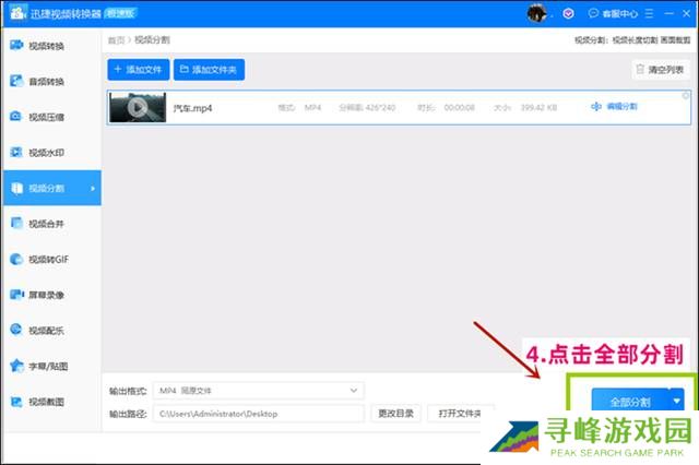 步骤四 编辑好视频片段之后,点击【全部分割】,等待一会儿即可完成。完成的视频文字自动生成文件夹保存在桌面。