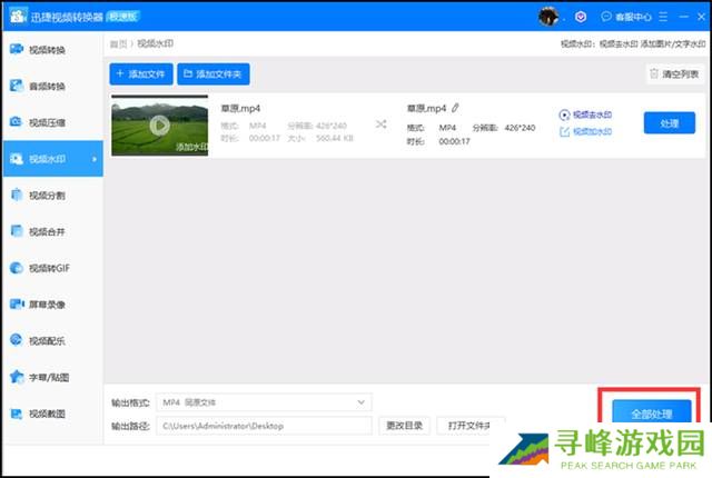 第三步 点击右下角的【全部处理】即可实现对文件的处理。处理完成的文件会自动保存到桌面,退出返回桌面查看即可。